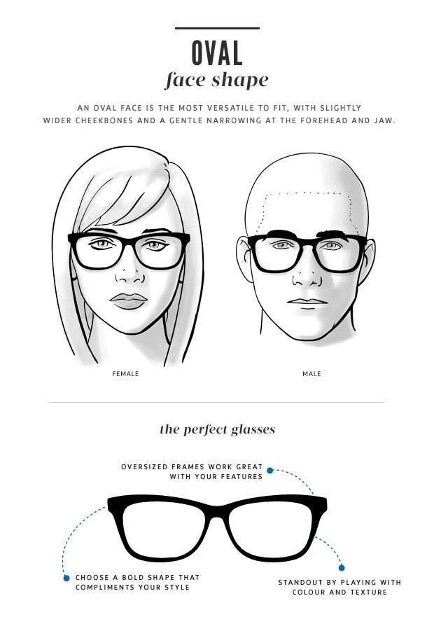 شهامت داشته باشیدو یک سبک جسورانه رو انتخاب کنید، مانند: یک عینک چشم گربهای یا یک جفت عینک خلبانی. اگر میخواهید یک عینک کلاسیک انتخاب کنید، سانیهای نمادین ابرو را امتحان کنید. عینکهای مناسب برای صورتهای بیضی شکل، شامل: عینک پروانهای، چند ظلعی، خلبانی، مستطیل، کلاب مستر و عینک ویفری هست.